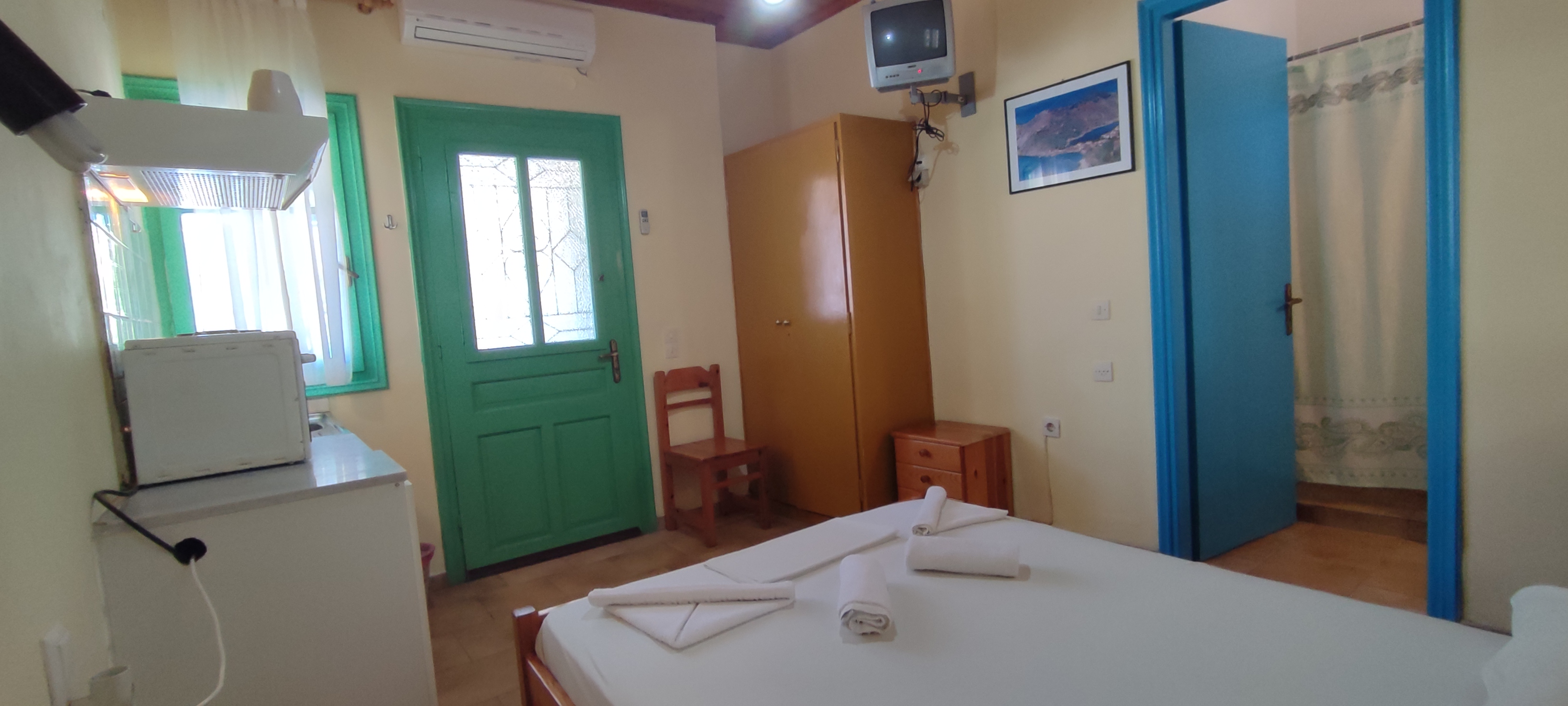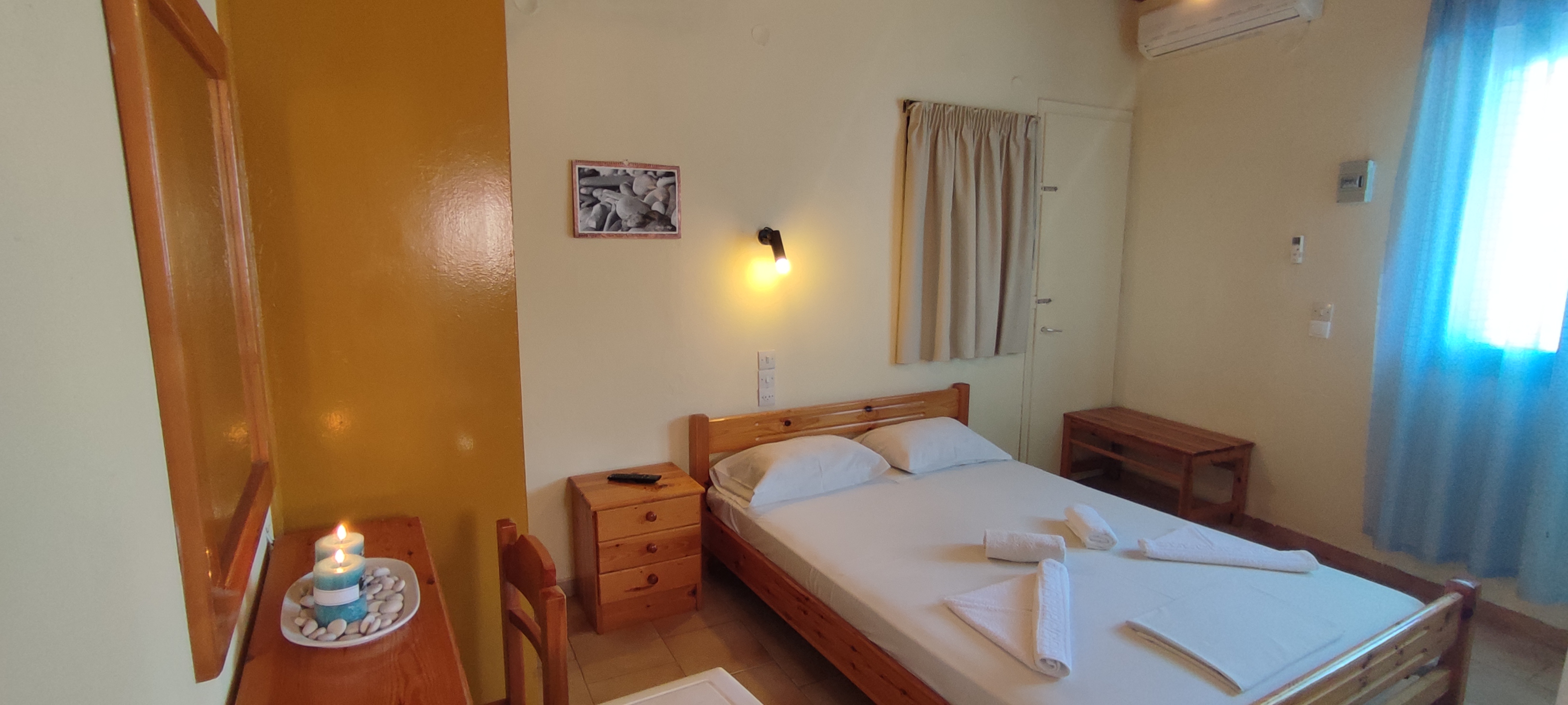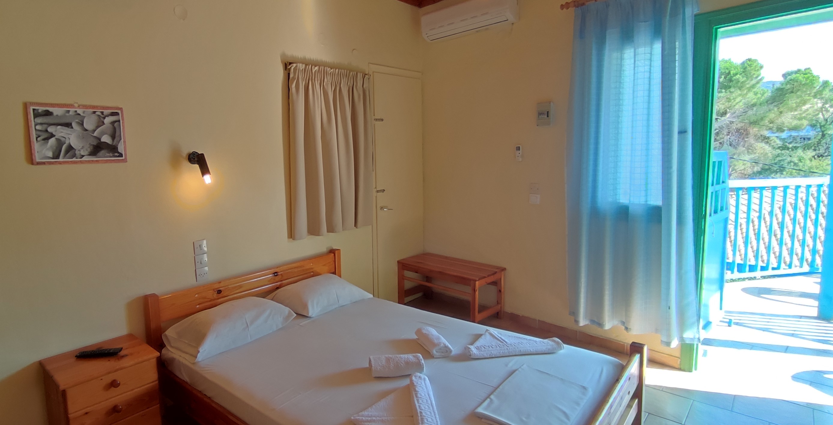 Wake up to direct views of Agios Nikitas beach from our double room. Designed for couples seeking a private retreat, the space balances airy Mediterranean light with a relaxed, homely feel.
